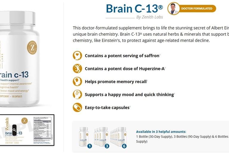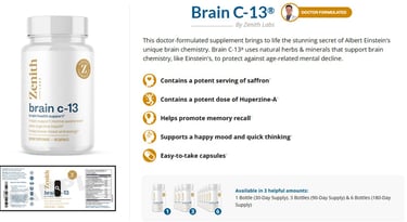 Buy Here with 70% OffThis doctor-formulated supplement brings to life the stunning secret of Albert Einstein's unique brain chemistry. Brain C-13® uses natural herbs & minerals that support brain chemistry, like Einstein's, to protect against age-related mental decline.